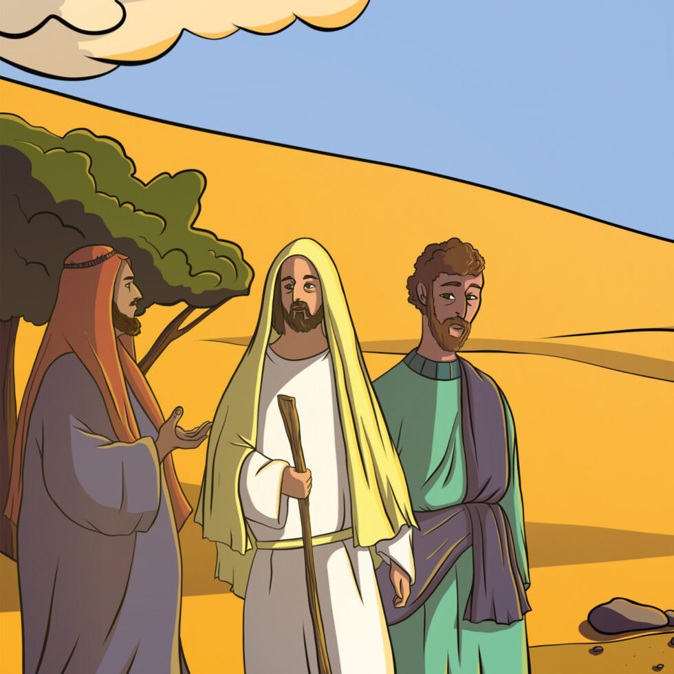 Двое учеников Иисуса шли из Иерусалима в Еммаус. По дороге к ним присоединился путник и пошёл рядом. «О чём вы говорите? Почему вы такие печальные?» — спросил Он. Ученики ответили: «Неужели Ты не знаешь, что произошло в Иерусалиме?!» — «Что именно?» — спросил Он. «То, что произошло с Иисусом, Который был пророком. но первосвященники и начальники наши убили Его. А мы-то надеялись, что Он — Тот, Кто должен спасти Израиль. А сегодня некоторые женщины изумили нас. Они сказали, что видели Ангела, сказавшего им, что Иисус воскрес. Некоторые из наших пошли ко гробу и убедились, что он пуст. Но Иисуса они не видели». Тогда Путник спросил их: «Почему вы не верите тому, что предсказывали пророки? Ведь Иисусу должно было так пострадать!» Затем Он объяснял им всё, что было сказано об Иисусе в Писании.