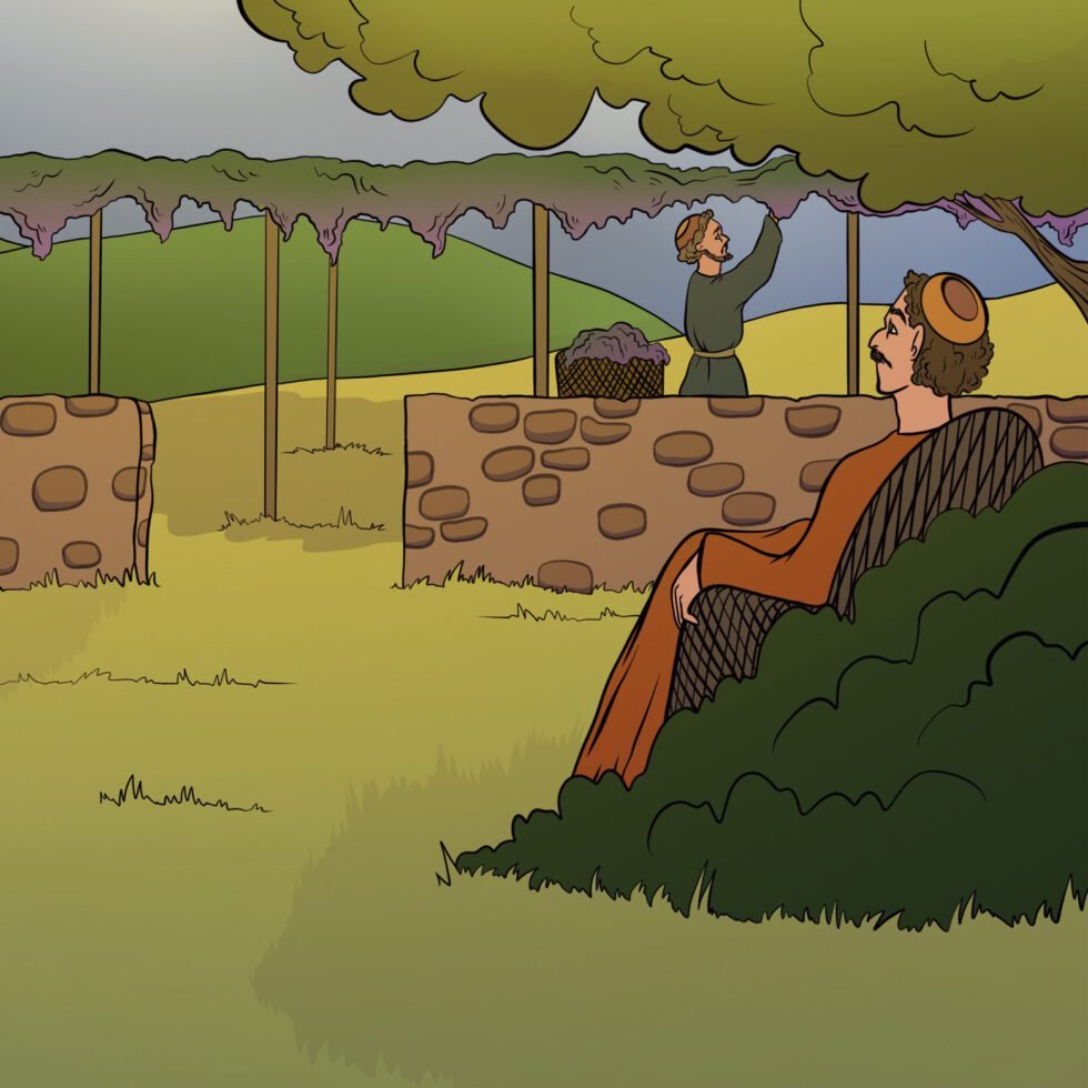 винограднике!» Но тот ответил, что не хочет. А потом раскаялся и всё же пошёл. Отец подошёл и к другому сыну. Тот согласился поработать, а сам не пошёл. Так кто из них исполнил волю отца?» — спросил Иисус. «Первый», — ответили они.