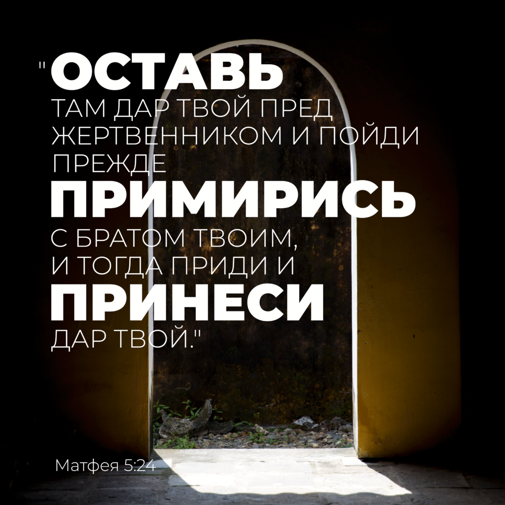 «Оставь там дар твой пред жертвенником и пойди прежде примирись с братом твоим, и тогда приди и принеси дар твой.»